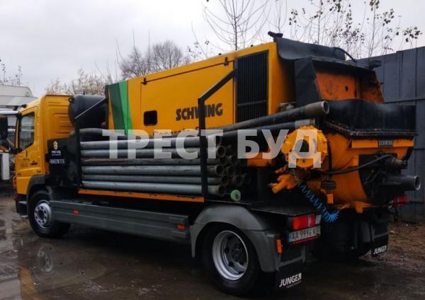 Замовлення роботи стаціонарного бетононасосу з трасою більше як 80 м. по горизонту , та подача бетону на висоту рахується як зміна.